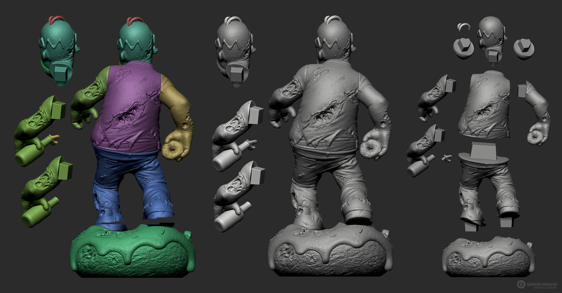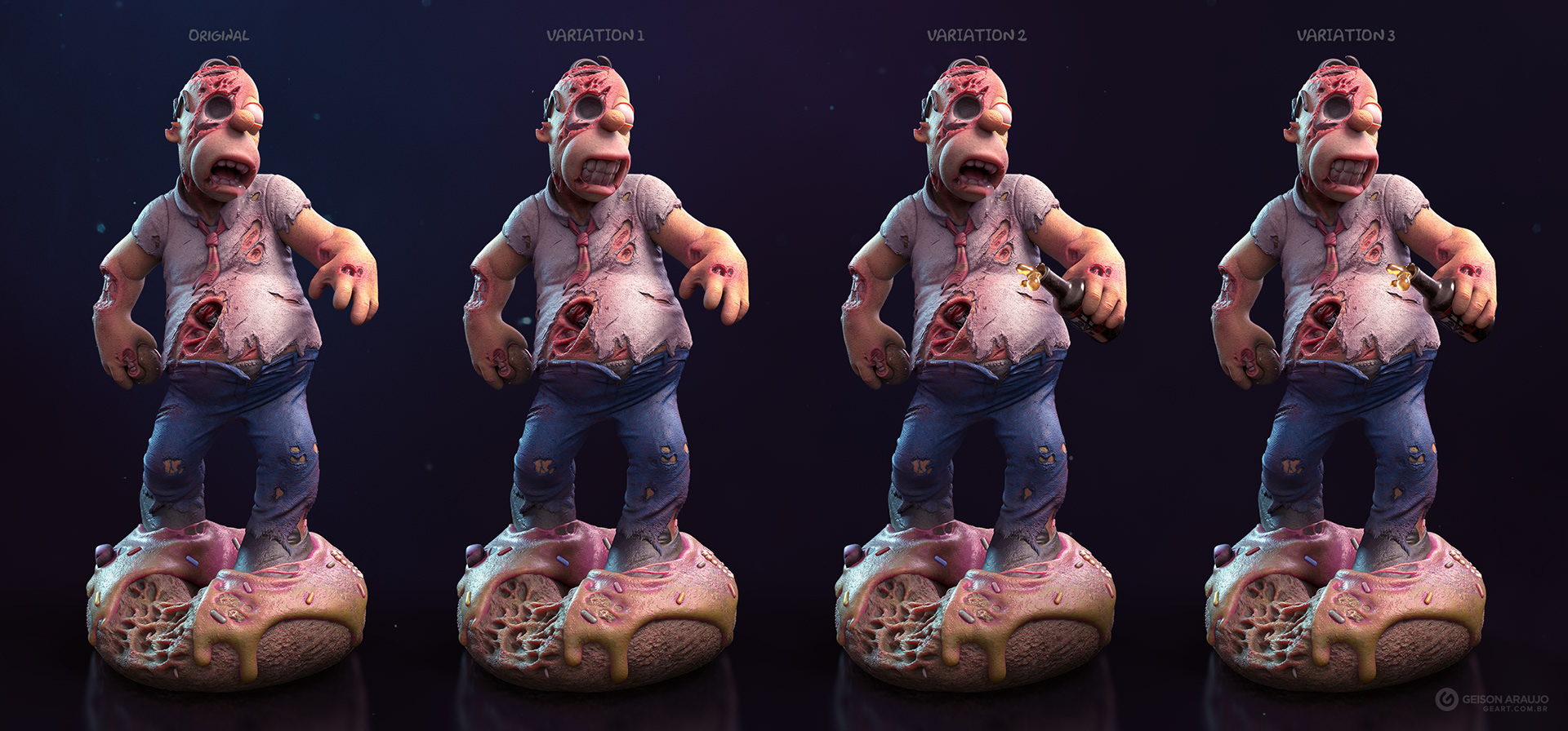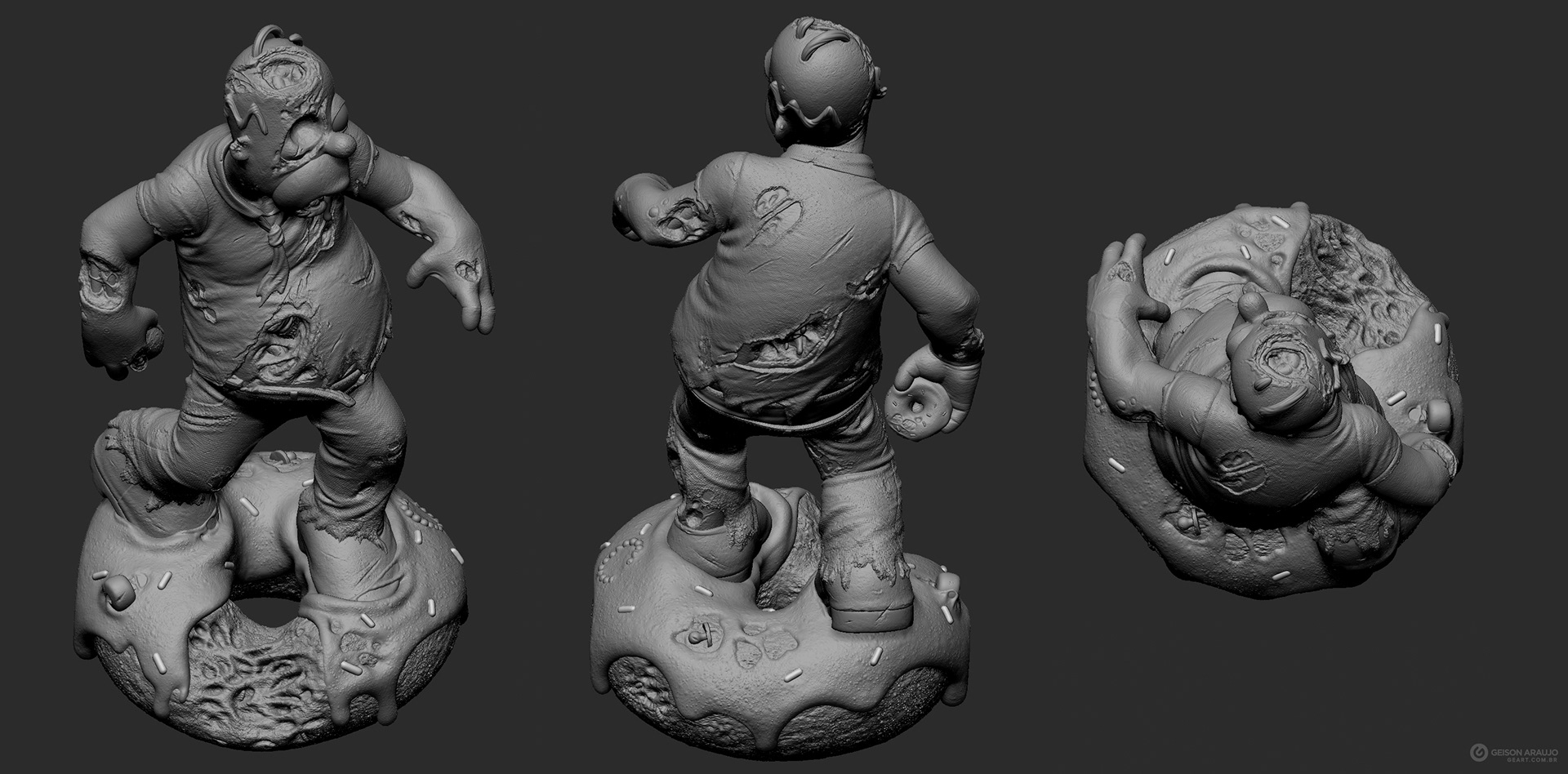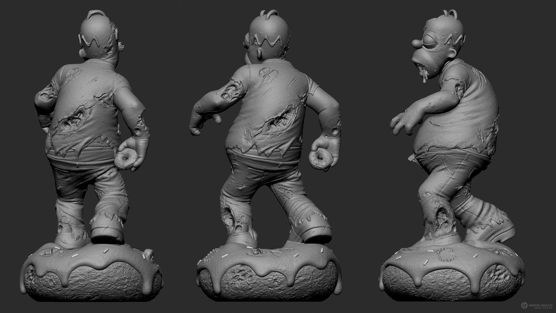 Fan art that I made of Homer, from The Simpsons, like a zombie. This work was made originally like my entry for a collectible contest about famous characters in zombie version, promoted by Alvaro Ribeiro artist, and this is my final version for portfolio.